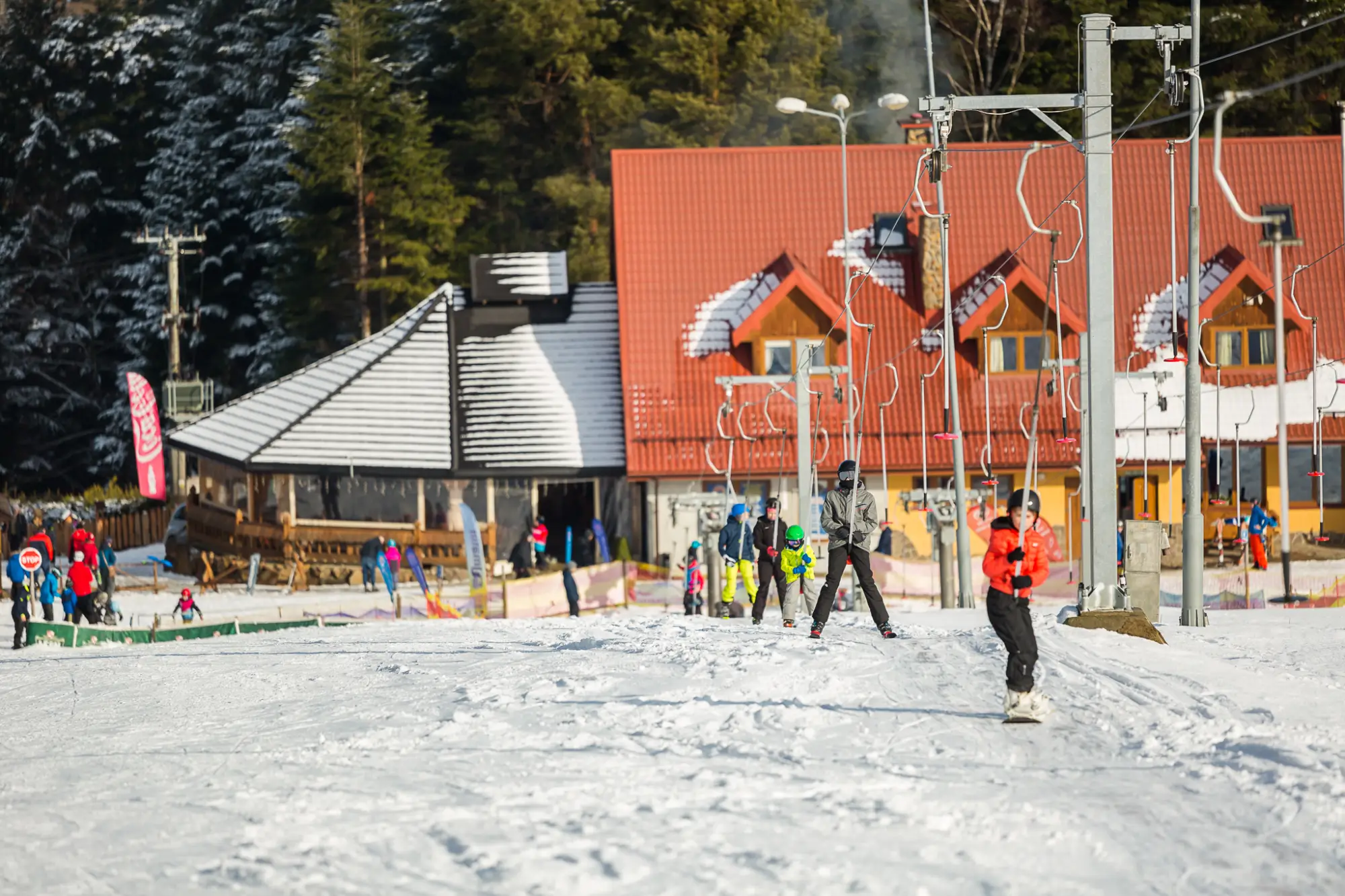 Lesko Ski - Bieszczady - obóz narciarski(wiek 7-18 lat)Jeżeli lubisz jazdę na nartach i kameralne stoki to Bieszczady są idealnym wyborem dla Ciebie. Cisza, spokój i brak tłumów gwarantowane, a do tego cała masa niepowtarzalnych atrakcji. ProgramDzień 1:Przyjazd do Lesko SKI, obiadokolacja, zakwaterowanie. Spotkanie organizacyjne i wieczór integracyjny. Dzień 2: Po śniadaniu sprawdzenie umiejętności narciarskich, podział na grupy zaawansowania, szkolenie na stoku. Po obiedzie dekalog narciarski, czyli kodeks FIS będący zbiorem reguł obowiązujących na stokach całego świata. Następnie zapoznanie z technikami smarowania, ostrzenia oraz konserwacji sprzętu. Po kolacji szereg propozycji zabaw i gier zapoznawczych, które pozwolą przełamać pierwsze lody i lepiej się poznać. Dzień 3: Po śniadaniu 4-godzinne szkolenie na stoku. Po obiedzie „Bieszczadzka Integracja - Orientacja”. Podzieleni na zespoły będziecie współpracować tak aby osiągnąć wyznaczony cel i zdobyć nagrody. Gwarantowana dawka wspaniałej zabawy. Po kolacji roztańczone i rozśpiewane karaoke. Dla chętnych wieczorne szusowanie. Dzień 4: Po śniadaniu 4-godzinne szkolenie na stoku. Po obiedzie Zimowe Igrzyska Obozowe, a w nich: „Szalone Spódniczki” (uczestnicy grają ubrani w specjalnie zaprojektowane spódniczki, które gwarantują dużo śmiechu oraz solidną dawkę adrenaliny), strzelanie z broni pneumatycznej do tarczy i puszek oraz strzelanie z łuku do profesjonalnej tarczy, przeciąganie liny, terenowe kółko i krzyżyk i wyścigi rzędów na wesoło. Po kolacji dyskoteka tematyczna. Dzień 5: Po śniadaniu 4-godzinne szkolenie na stoku. Po obiedzie „Planszówkowy Zawrót Głowy” gry planszowe dla każdego (Alias Party, Nie do Pary, DiXit, Jenga, Uno, Dobble, Mafia lub inne). Po kolacji zimowe kino obozowe. Dla chętnych wieczorne szusowanie. Dzień 6: Po śniadaniu 4-godzinne szkolenie na stoku. Po obiedzie Archery Tag - wyposażeni w maski i bezpieczne miękkie strzały rozegramy niejedna ciekawą bitwę i scenariusz. Ta forma aktywnej i bezpiecznej zabawy przypomina paintball tylko bezbolesny. Po kolacji obozowa fotobudka i pocztówki dla rodziców. Dzień 7: Po śniadaniu 4-godzinne szkolenie na stoku. Po obiedzie zwiedzanie zapory na Jeziorze Solińskim oraz relaks na basenie Aquarius w Lesku. Po kolacji ognisko pożegnalne, podsumowanie obozu oraz wręczenie nagród i upominków dla każdego. Dzień 8: Po śniadaniu, pobranie prowiantu na drogę i powrót do domu. Program fakultatywny
